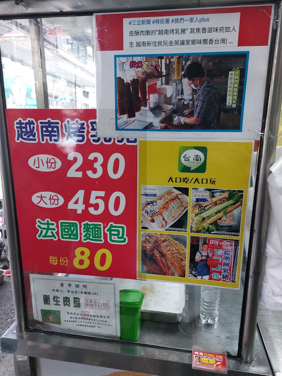 烤豬肉小份 醃製中的烤肉 夾在法國麵包裡的烤豬肉 法國麵包70元 烤乳豬小份 越南麵包