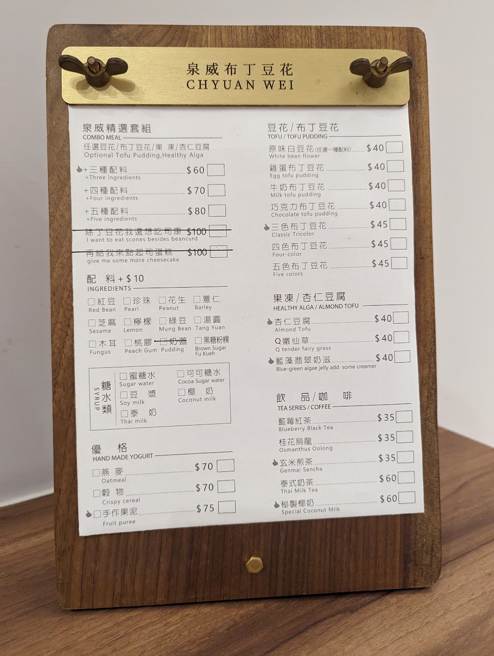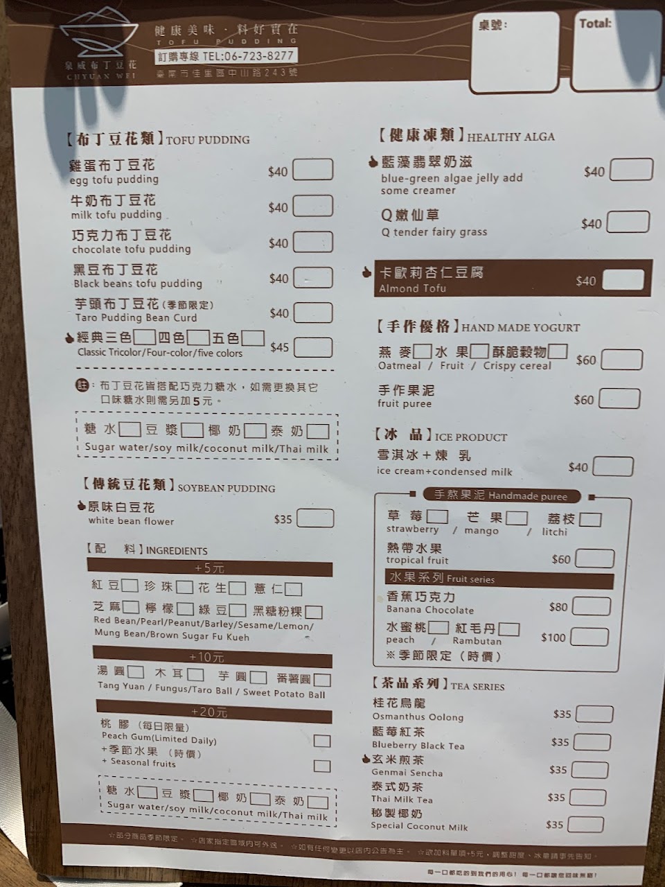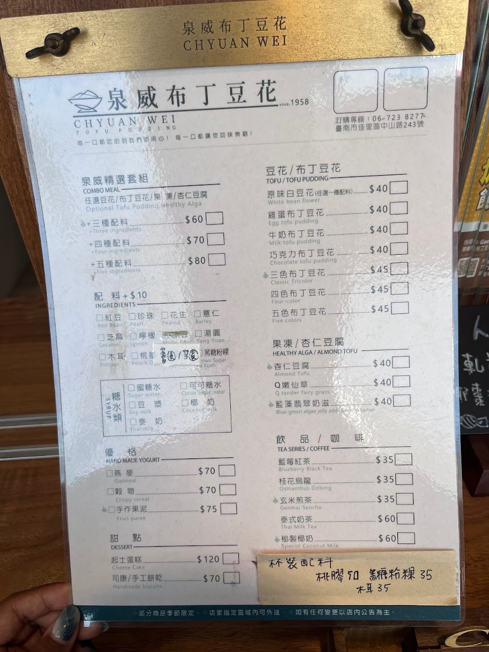 2024最新在地推薦餐廳的菜單_泉威布丁豆花&卡歐莉幸福滋味的菜單、圖片