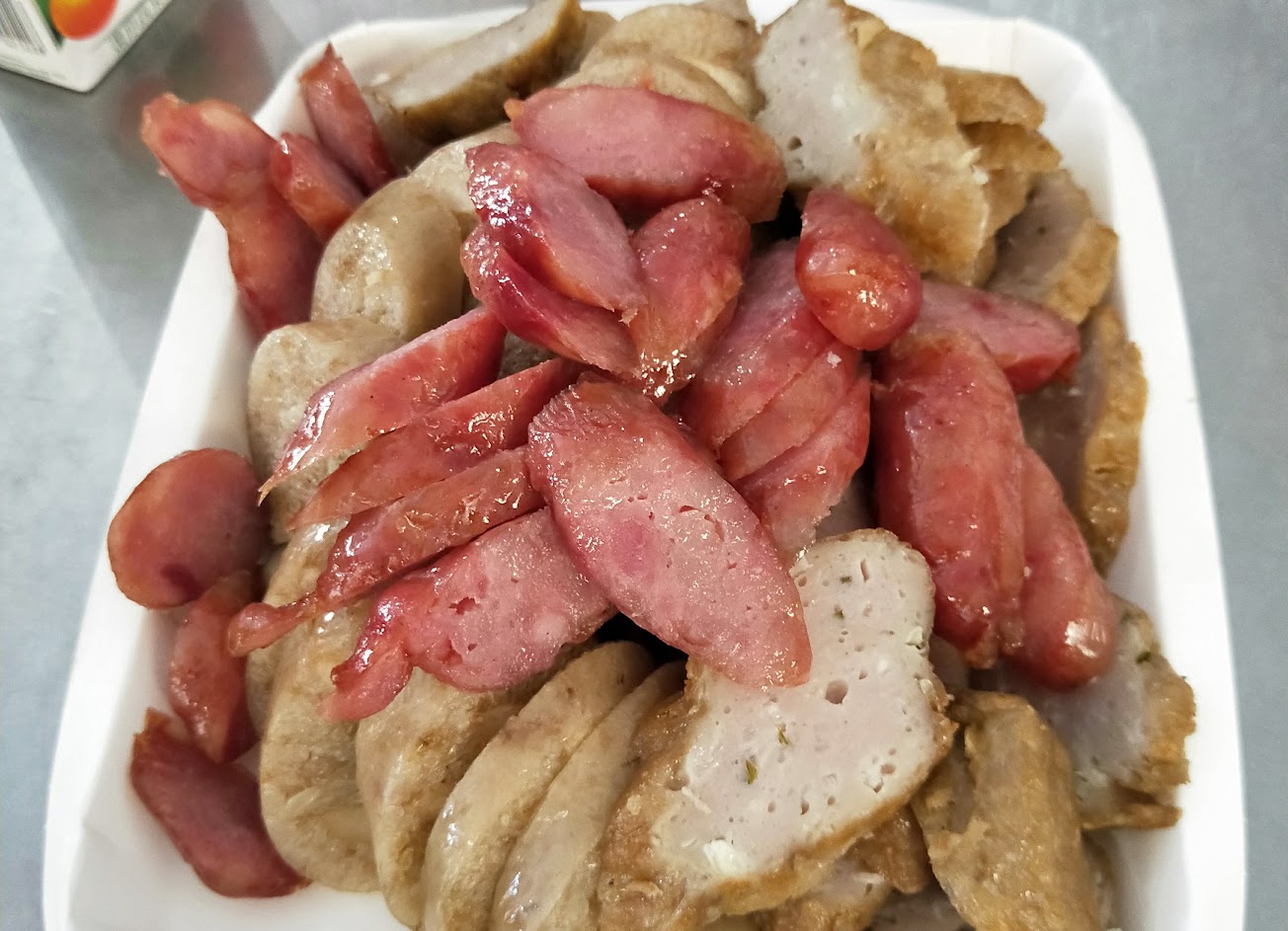 不過我們消費經驗不佳,可能見我們一行五個大人是大戶,我們點了1份粉腸和2條大腸,老闆娘要切時卻擅自加量(價格當然是依秤重,並不是多送我們的),點的人並沒有看到她切,是稍後走近攤位的友人沒聽到點的人點多少,只見到老闆娘拎3條大腸秤一秤拿去切,後來吃不完,她抱怨點的人幹嘛點3條那麼多,點的人才很驚訝地說他明明只點2條。