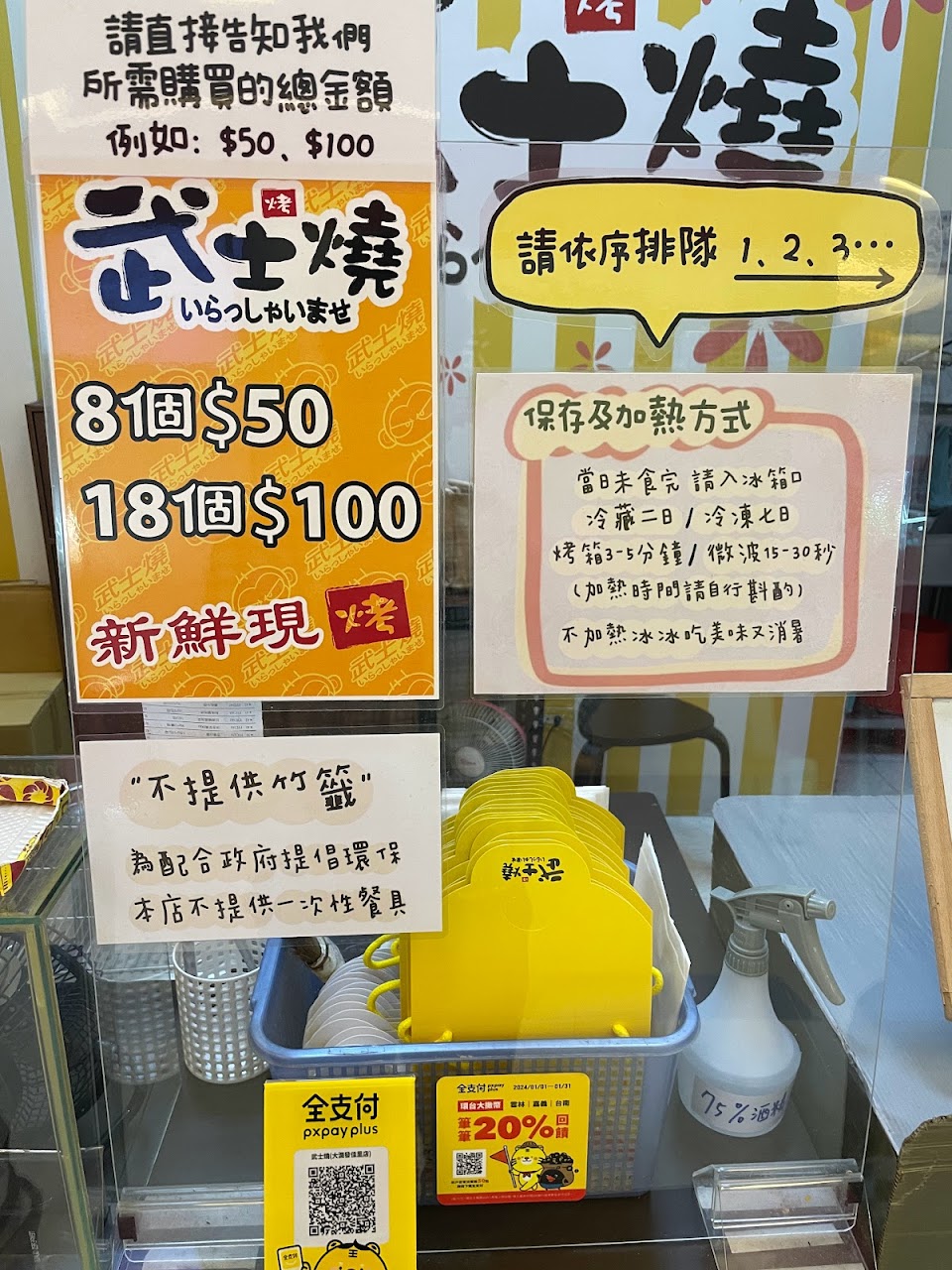 武士燒好吃 在大潤發佳里店 入口處左邊 位置不太顯眼 2023年2月19日還有在臺南營業的武士燒 8個$50 18個$100 平日:10:30~21:00 假日:10:00~21:00