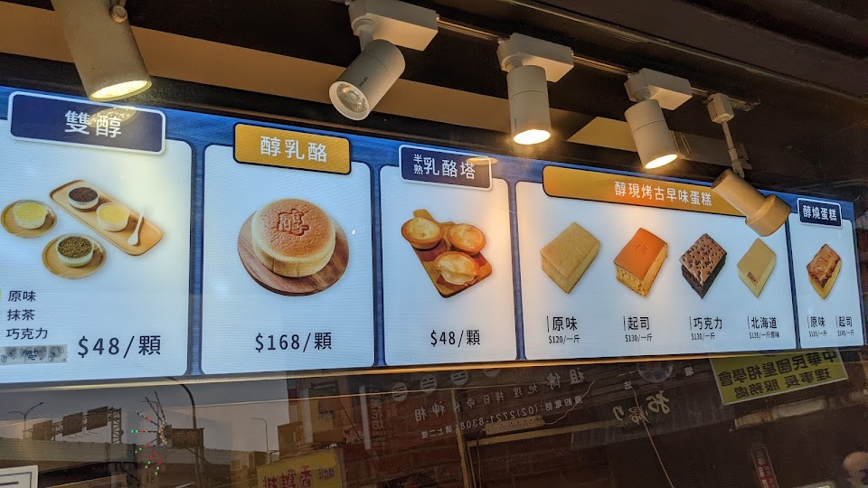 論斤稱重,比一般古早味蛋糕還要貴1.5倍,招牌醇燒蛋糕上面的蜂蜜起司比較特別,但我覺得味道普通我家人卻不喜歡,下次不會回購。