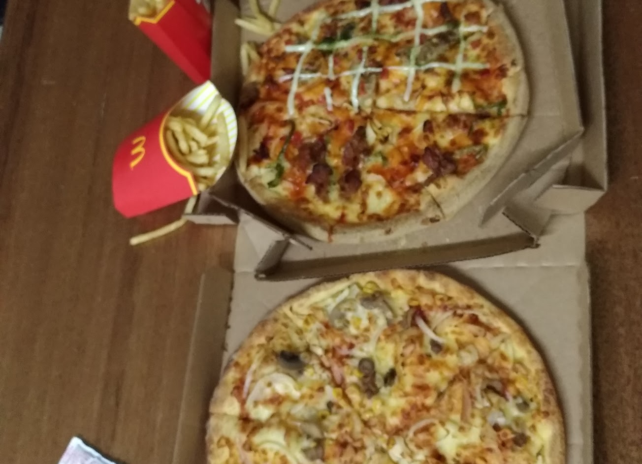 剛剛5:30分拿三個大披薩回去吃,又硬又難吃,沒起司味道,吃起來跟石頭一樣硬,我第一次吃過這麼難吃的披薩