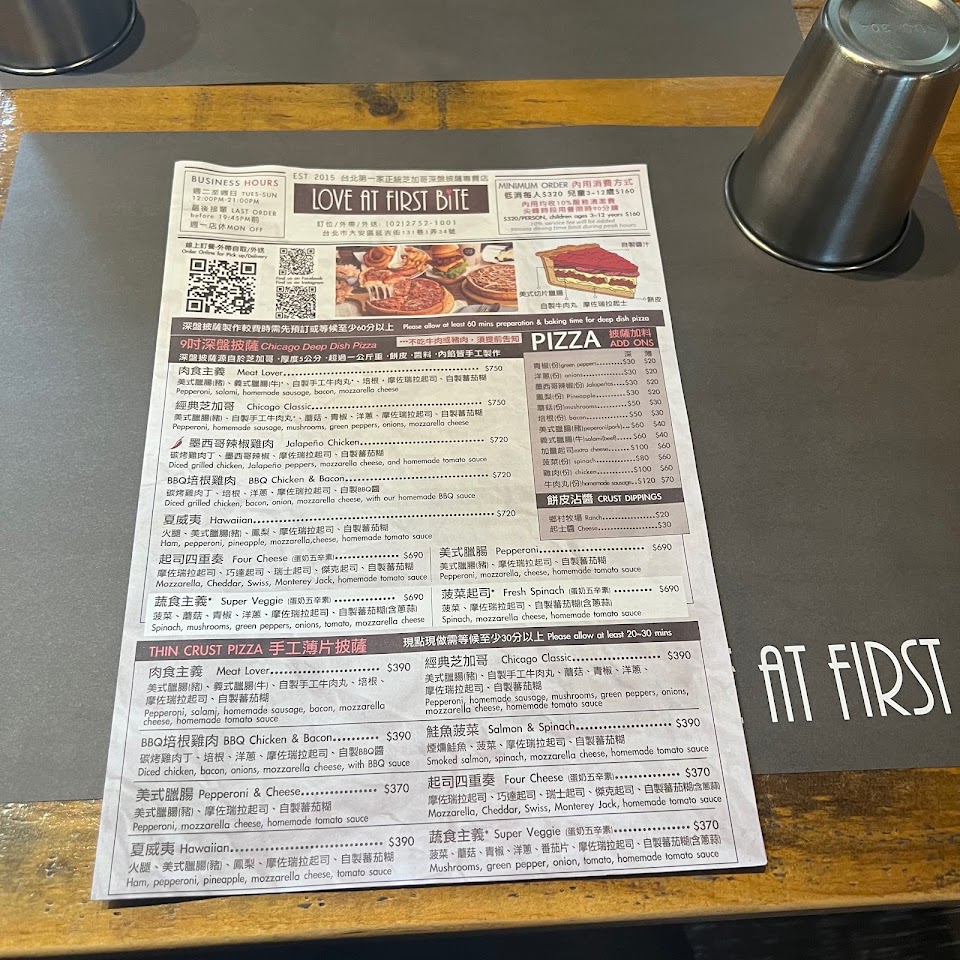 Love at first bite是提供美式餐點,主打 #芝加哥深盤披薩 #美式重乳酪蛋糕 ,深盤pizza味道非常道地,餅皮的脆度一級、底部餅皮也是鬆厚不濕軟,加上超級多的摩茲瑞拉起士整個就是棒棒棒!??