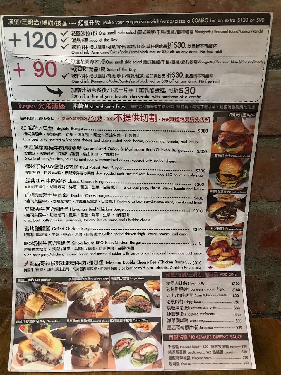 東西好吃,披薩還可以拉絲很有趣,漢堡的麵包手作的很香,漢堡很大視覺味覺都很滿足,很適合聚餐大聲聊天的場合,座位空間較小,不適合一次點太多,服務員態度很可愛,附近有很多停車場供開車人士去,吃飽還可以順便走路逛松煙消化一下大肚子*\0/*