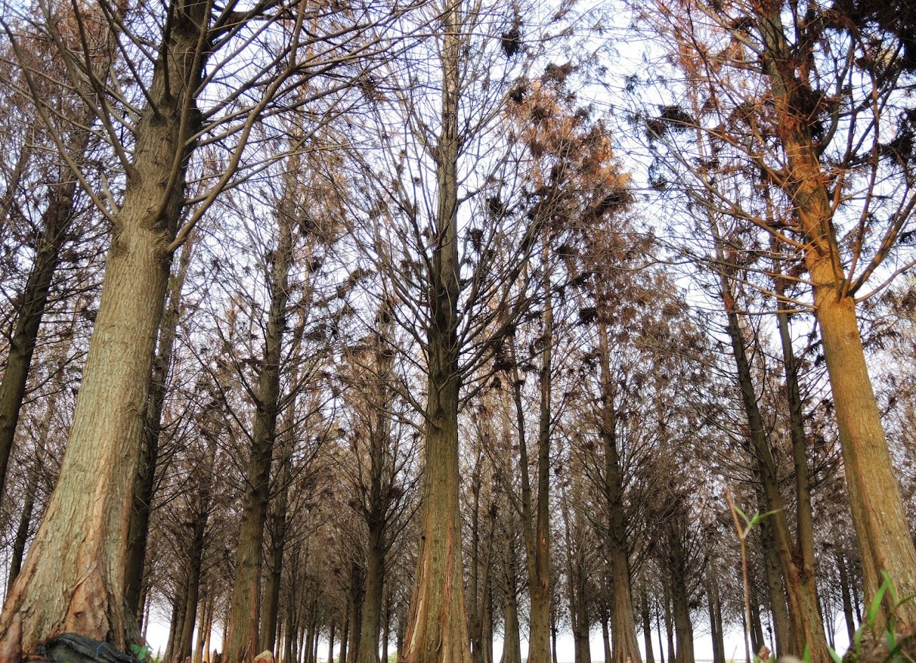 天氣好熱的除夕午後,落羽松轉紅的葉子已掉的差不多了,剩下的枝幹別有一番風味~