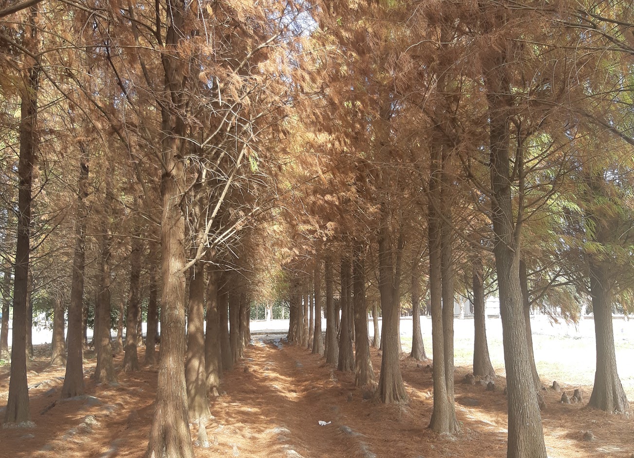 位於~台南市六甲區縱貫公路 小片落羽松林木,設有人行步道,可欣賞色彩斑斕的季節性落葉景緻。