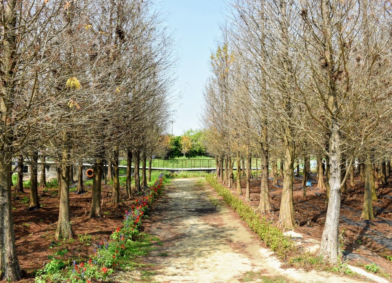 有柏油路,推輪椅也很方便,適合家裡長輩去走走,落羽松排列整齊真的蠻美的