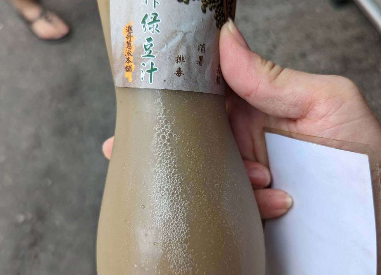 綠豆汁:湯體稍濁,有點綠豆沙的感覺,糖度一分