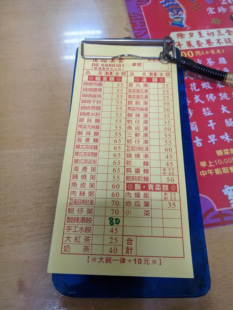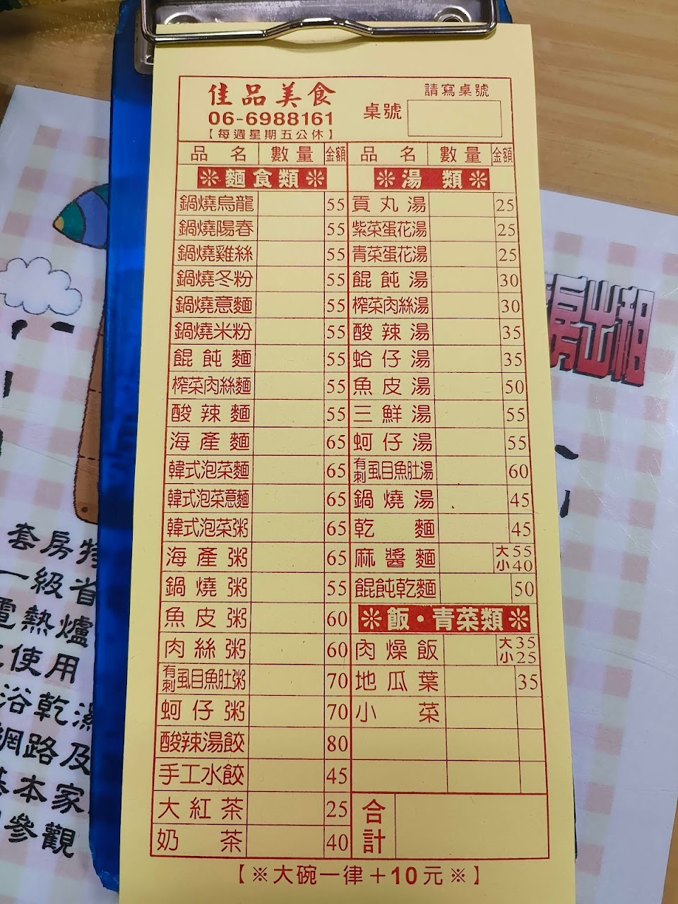 用餐時間,人很多,老闆跟店員的服務態度很好,內用座位也非常多,點了一碗鍋燒意麵,是在以前才看的到的那種傳統鍋燒意麵,一碗吃下去,就很有飽足感,聲音非常好,價錢也很便宜,喜歡吃美食的朋友們,可以去佳品美食吃看看唷。