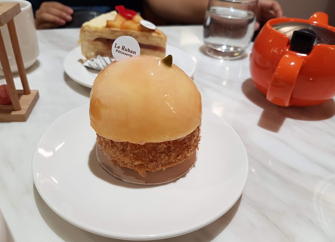 千層真是太棒了,裡面的凍帶一點葡萄柑橘風味和草本清香,中和卡士達的甜,口感濕潤不垮 ; 水蜜桃則是水嫩多汁,底下的蛋糕體也是層次豐富,也有點草本清新感,兩款甜點都不會過於甜膩,值得再訪。