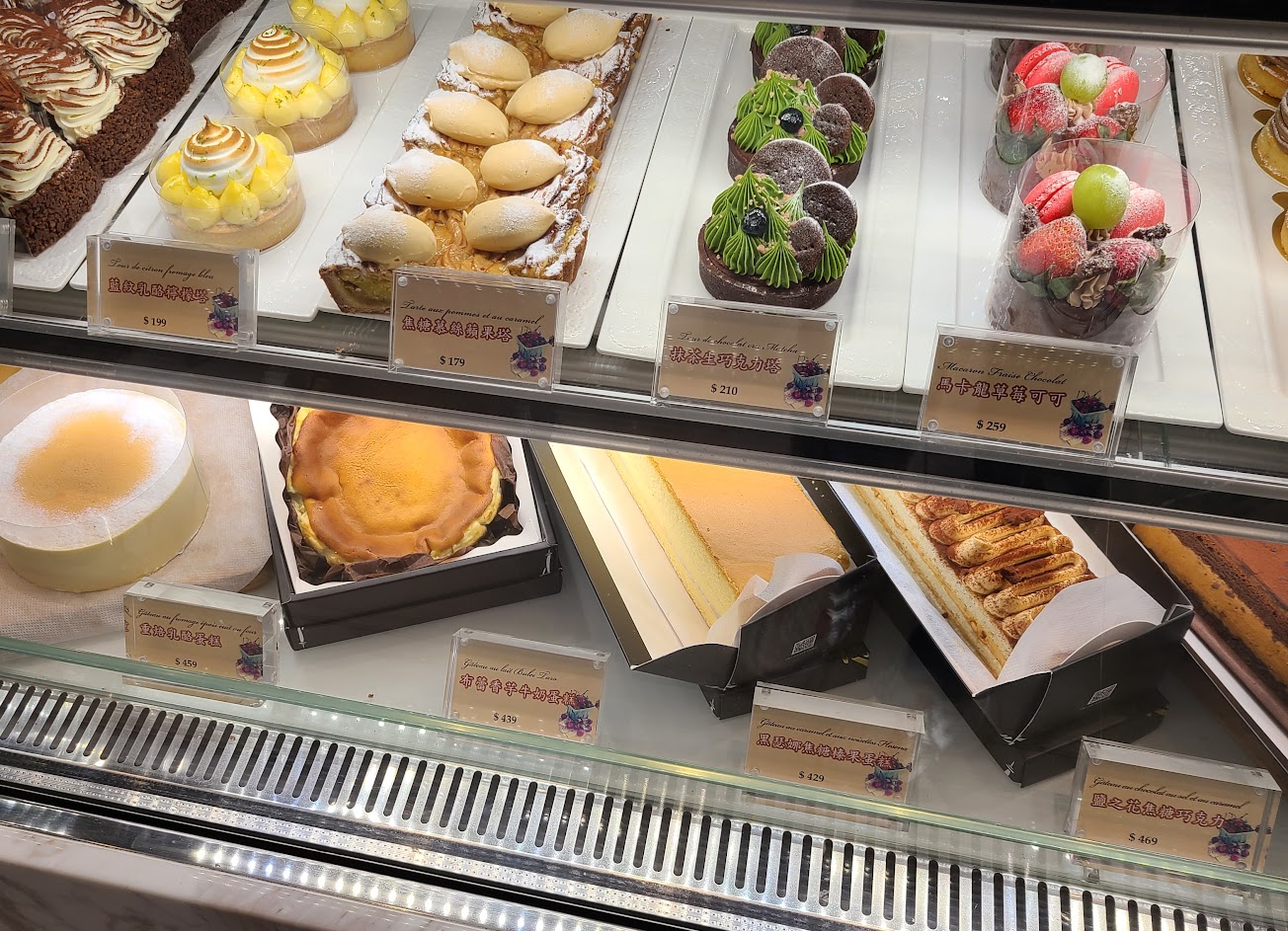 跟老婆買了3樣甜點:檸檬塔、草莓巧克力、牛奶捲