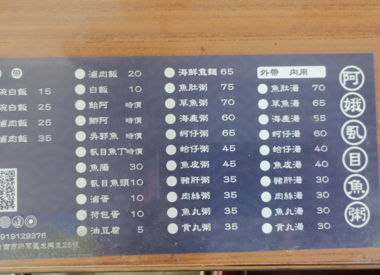2024最新在地推薦餐廳的菜單_阿娥虱目魚粥的菜單、圖片
