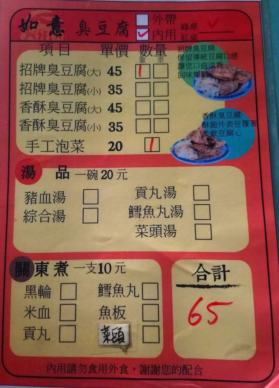 經過後壁,在地圖上看到號稱五十年老店,因為喜歡臭豆腐所以來朝聖 ,本來沒抱什麼期待,意外是好吃的,點了招牌跟香酥兩種,炸法不同、口感也大不同,綜合湯一碗20湯頭不錯,C/P值算高,店家態度很好,辣醬是獨家制作特別帶勁,路過建議來嚐嚐看。