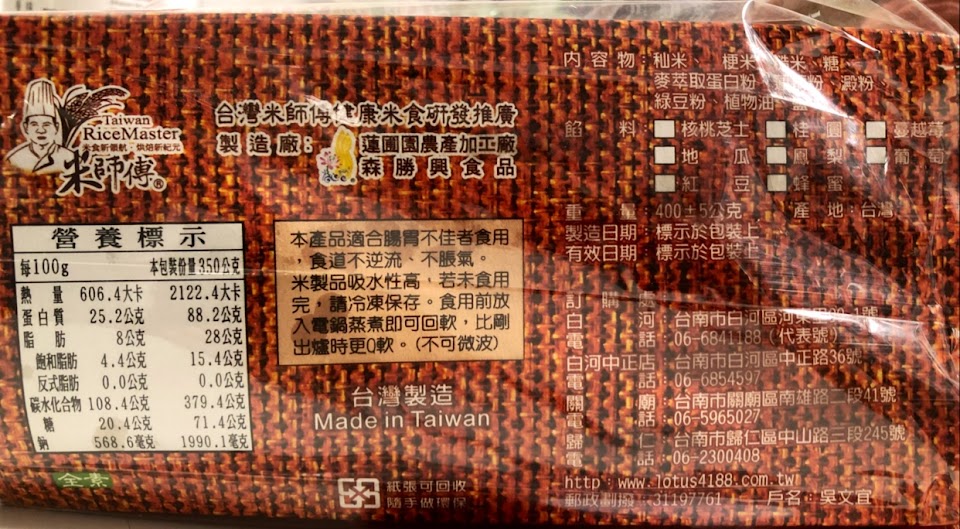 後壁的米很有名,米麵包倒是第一次嚐鮮,之前曾聽友人說有人在研發米麵包給適合無麩質的人吃,家人買的是蔓越莓口味的吐司,不是很平價的價格,吃起來有淡淡米的香氣及蔓越莓的酸味,口感不似一般麵包來的柔軟,比較乾一點,涼掉口感略差,建議弄熱了再吃。