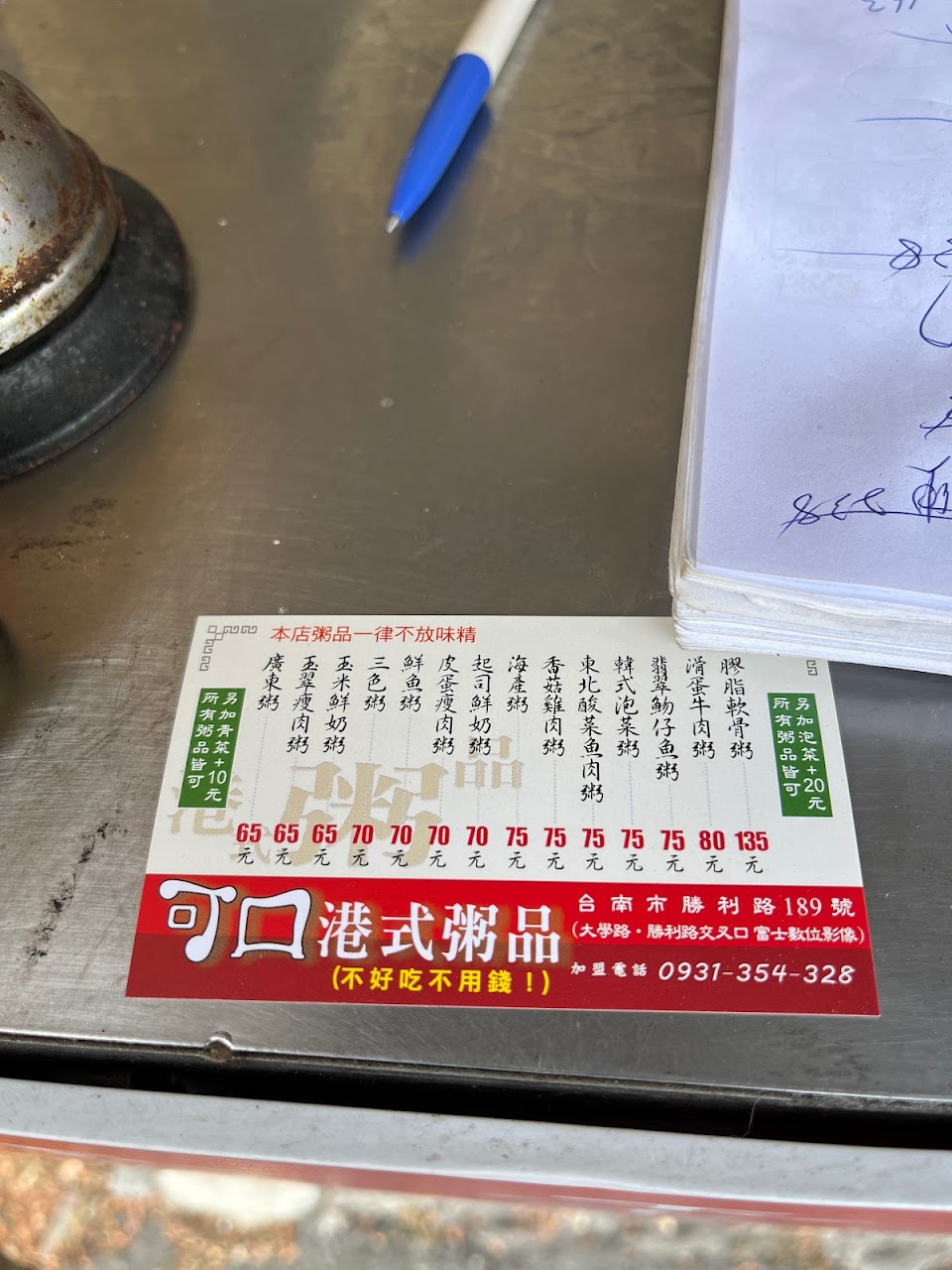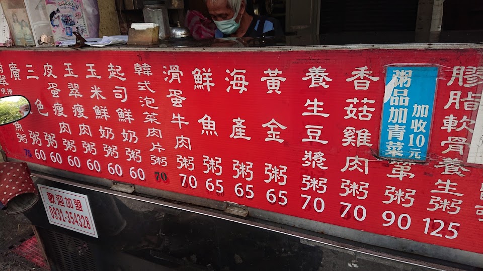 過了好幾年再來吃,老闆煮的粥還是一樣好吃。 可以說要加10塊青菜在裡面,蔬菜量會比較多一點喔。 雖然店家環境只是個小攤子,但腸胃炎的朋友吃了説好吃,也沒有不舒服,所以應該還算衛生吧?!
