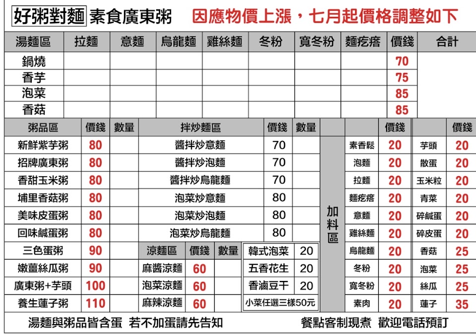 2024最新在地推薦餐廳的菜單_好粥對麵 素食廣東粥 崇信店的菜單、圖片