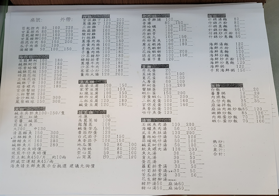 中午,只有一桌,空虛感上身,價格應該有調降,這次點了一堆, 280元,可能因為沒有點魚的關係吧,3人吃的份量,價位上還可以,但是青菜有點涼,肉類還可以有加熱,蕃薯粥也是熱的,這點可以接受,因為他們擺盤的地方是沒有加熱的,除非換菜很快,不然冬天天氣菜馬上就冷了!