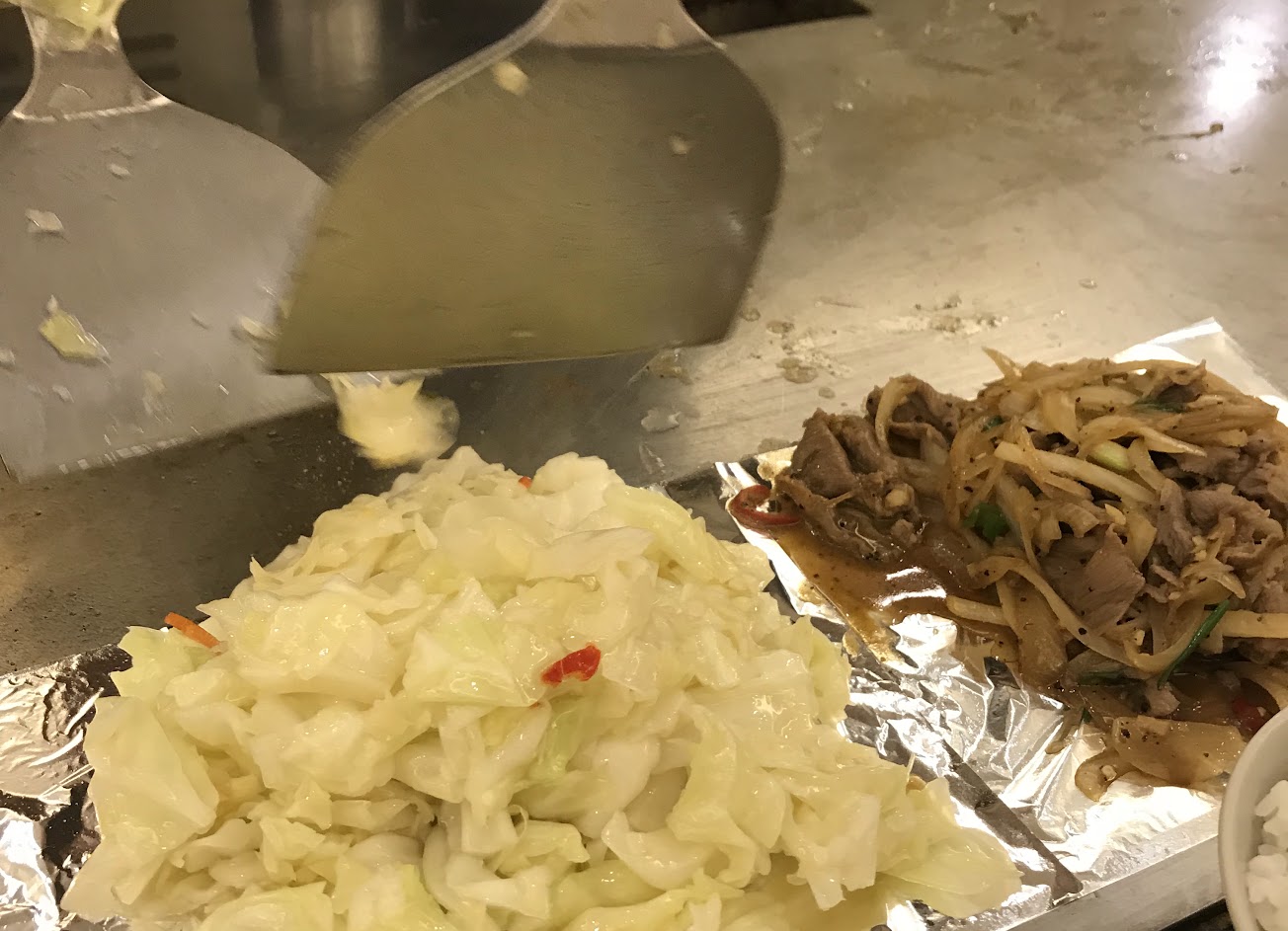 上菜超快,都還沒點好高麗菜就放在面前了,跟師傅說小辣結果好辣,但很夠味我喜歡。開發票這件事也讓我印象很深刻,因為以前吃鐵板燒從未拿過,哈哈。