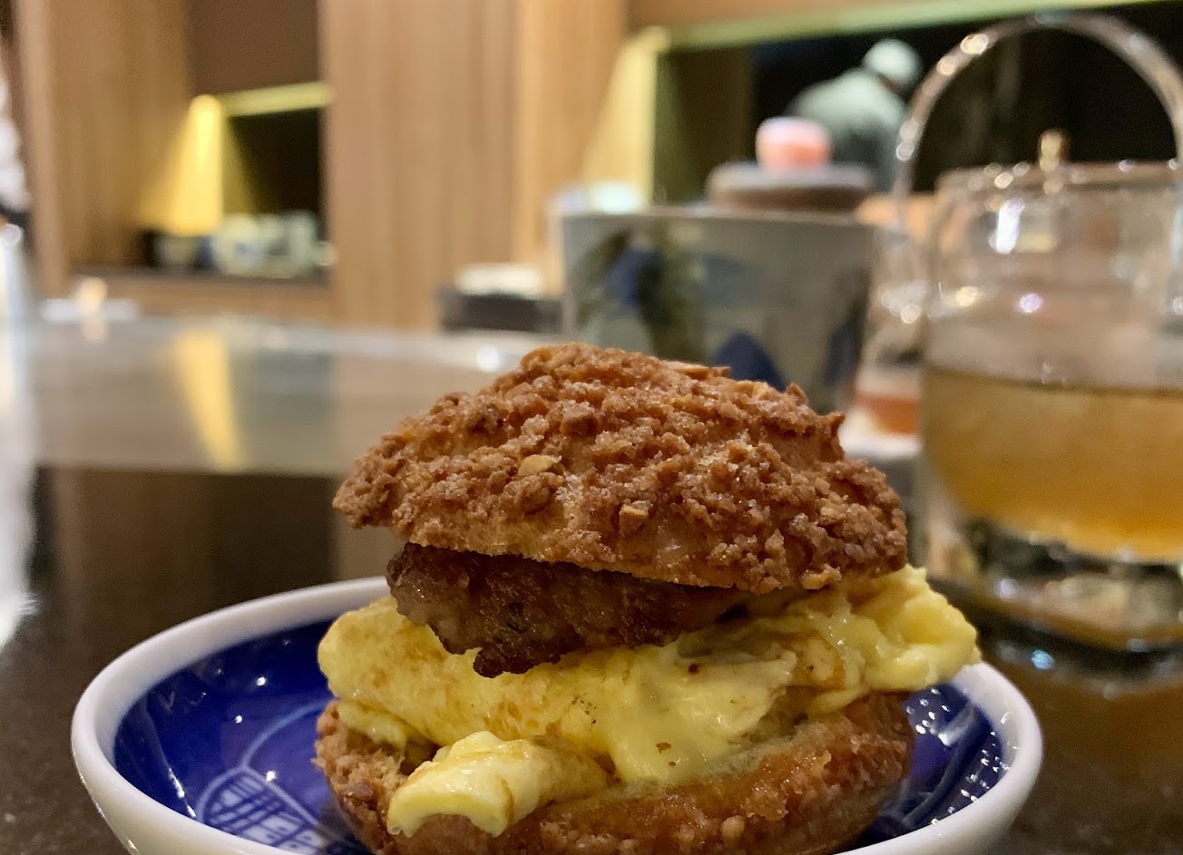 ?泡芙漢堡 (和牛牛筋、歐姆蕾、極細黑胡椒粒,歐姆蕾表現的太棒,完美銜接牛筋肉汁。)