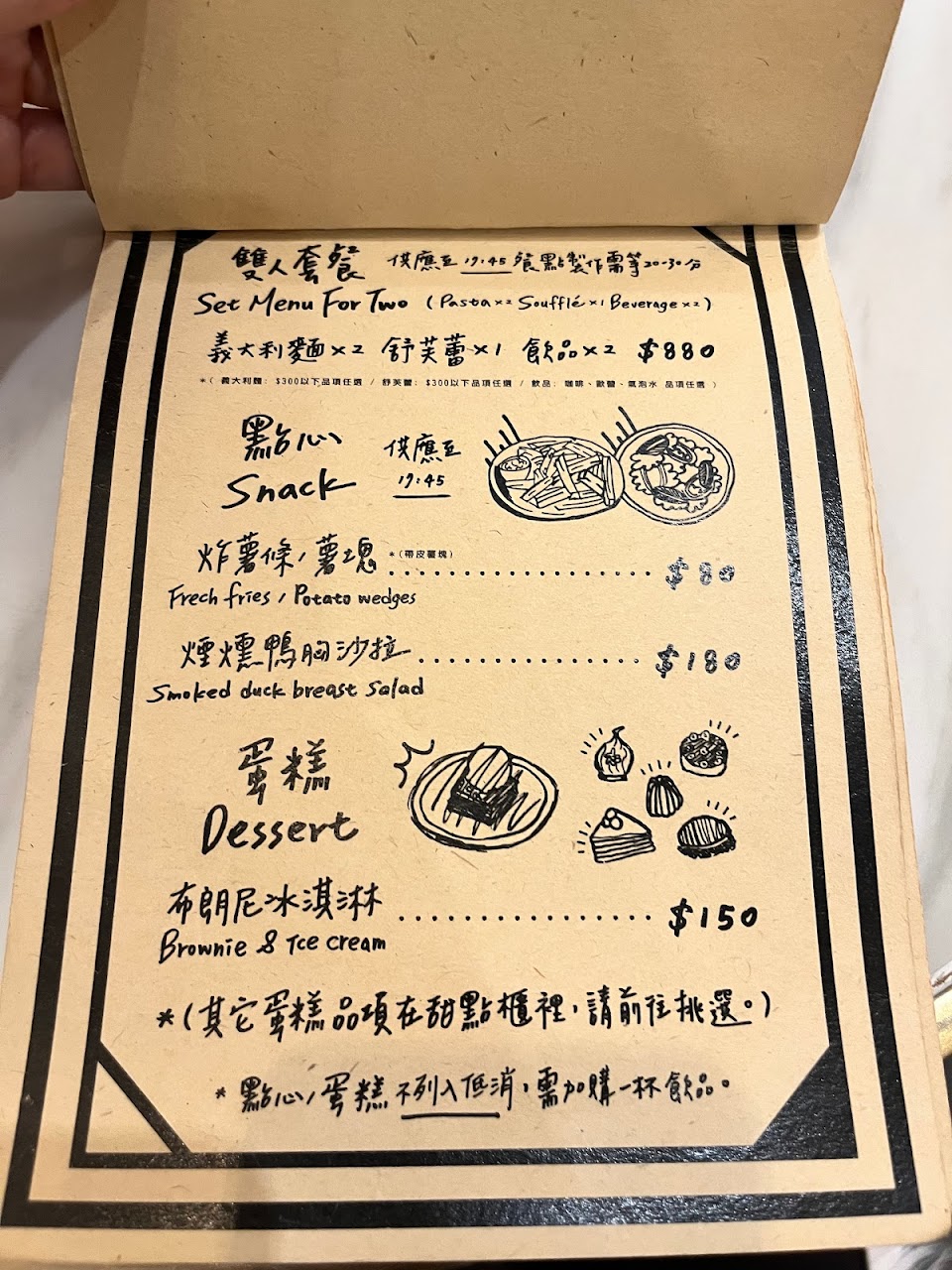 ❌低消每人一份早午餐/舒芙蕾/義大利麵/飲品/點心、蛋糕須加購飲品 擇一(6歲以下不用)