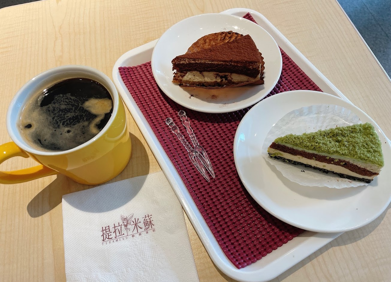 提拉米蘇很好吃!店員也很親切,見外面天氣不好時主動詢問需不需要幫忙多加一層防水包裝,非常貼心~