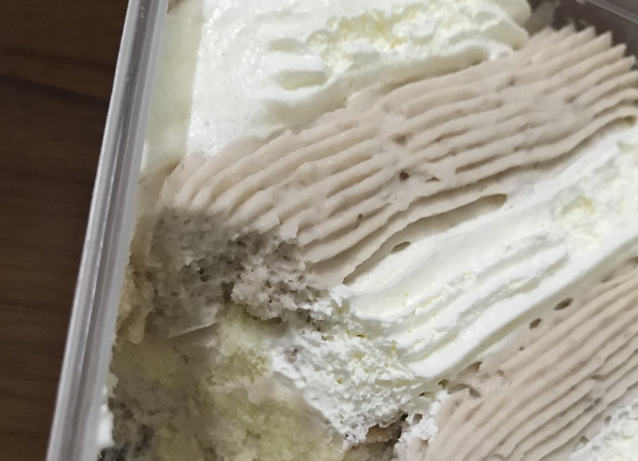 不二家的芋泥蛋糕是雙層夾餡, 芋泥餡分兩種,一塊塊顏色較深的是綿密的芋泥,也會有芋塊,另一個顏色比較淺的是芋泥混奶油.千萬別想成芋頭口味的奶油,不是的,他吃起來就真的是芋泥,只不過有添加一些奶油在裡面,吃起來會比較軟一些、順口一些,也因為有奶油,所以比較甜一點點,對我而言他的CP值超高,好吃又便宜,內餡芋頭紮實、芋泥芋塊都有,口味又不會過於甜膩,份量還不小。
