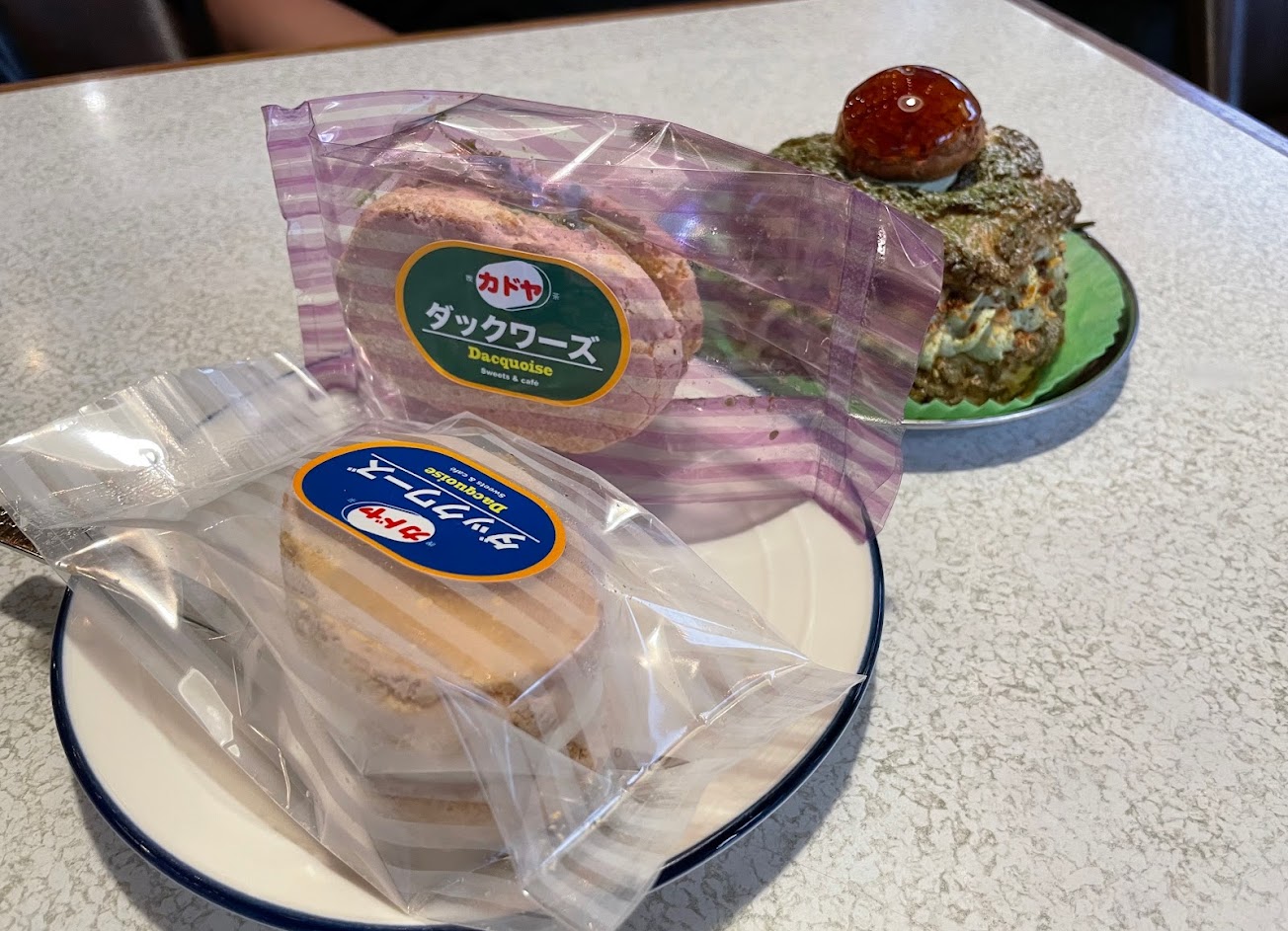 # 達克瓦茲 一份是兩個 兩種口味 其中一個是蘭姆葡萄 蘭姆葡萄的酒味非常重 喜歡酒味的可以點這個 包裝也算復古可愛