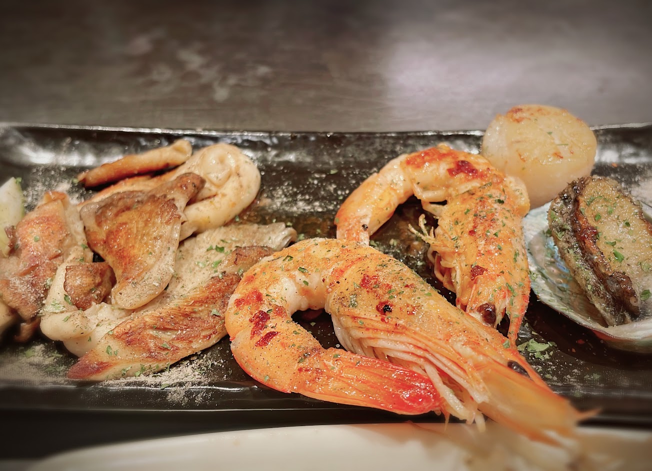 今天點了雙人套餐,菜色豐富多樣又美味。沙朗牛排7分熟,剛剛好的熟度,非常鮮甜的干貝和草蝦,還有煎的香氣四溢的鱈魚排,雞腿….吃的出食材的新鮮和師傅的好手藝。