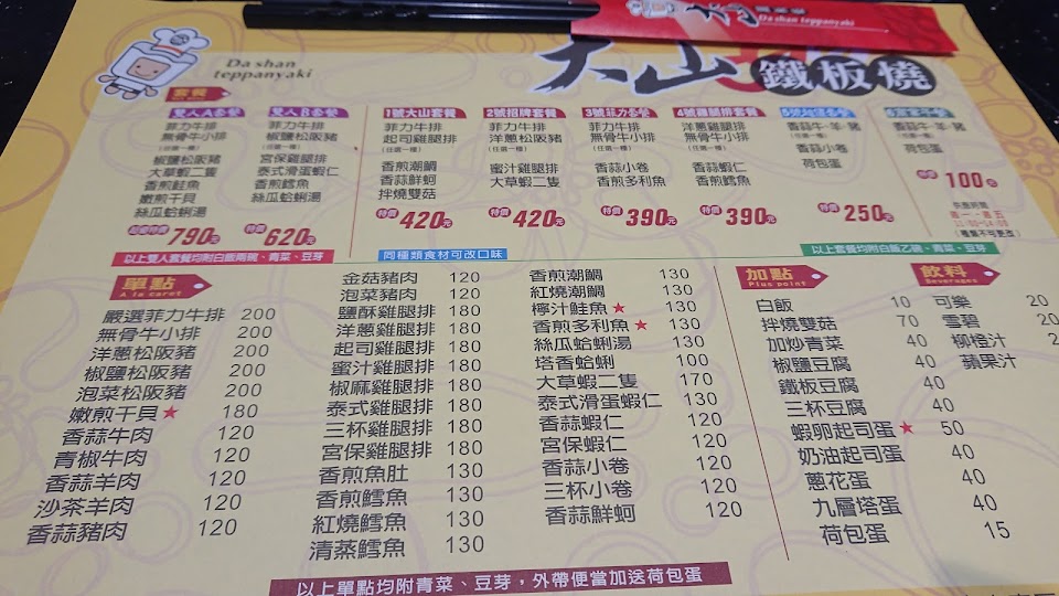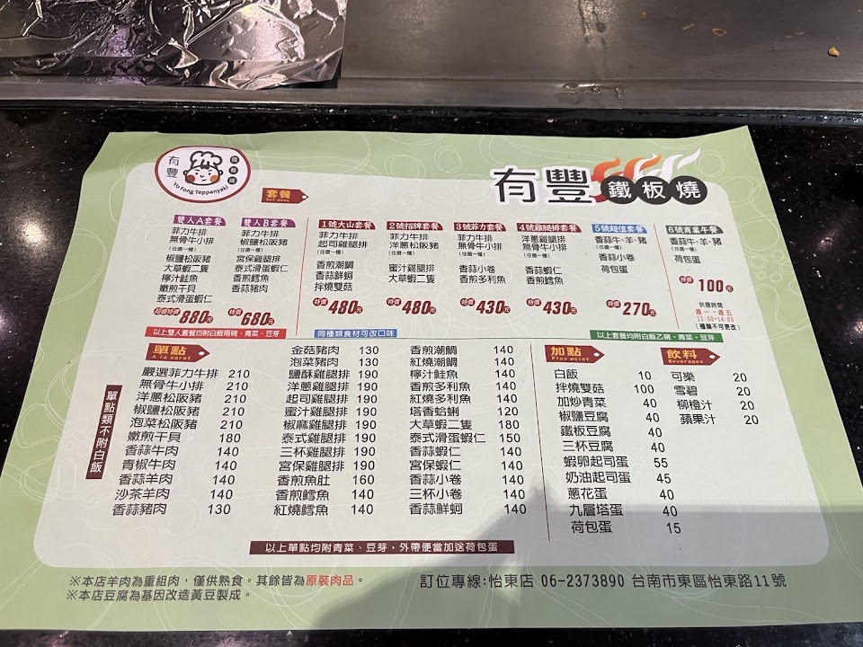 2024最新在地推薦餐廳的菜單_有豐鐵板燒(原大山)的菜單、圖片
