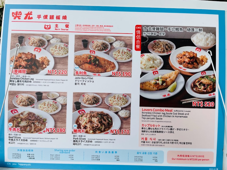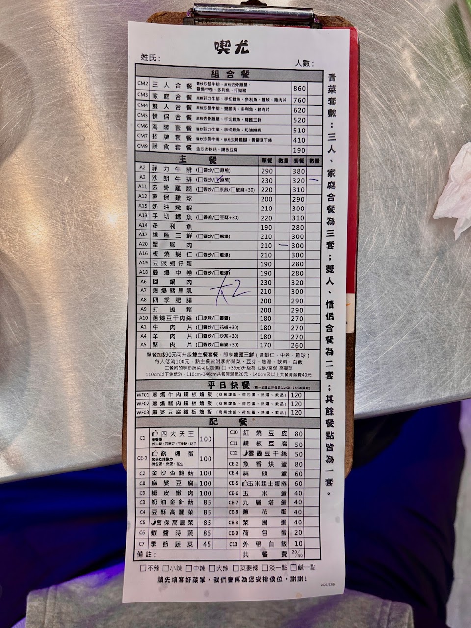 接著點餐,菜單明確的寫了兩人皆為套餐,結果兩人都只來單點,帳單也key錯。
