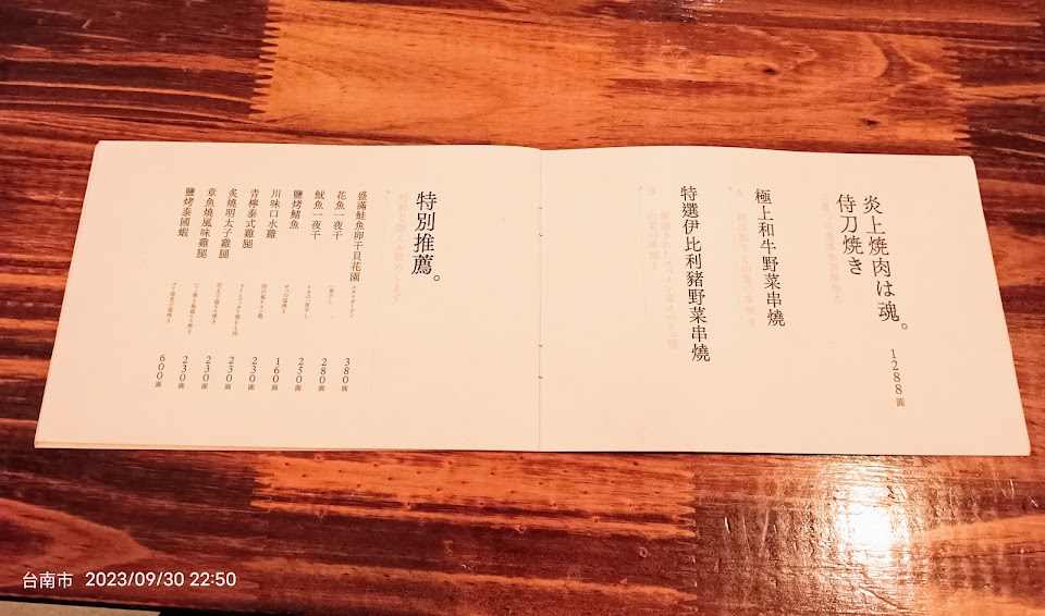 今天二訪發現跟以前的菜單都不一樣了,以前是吃鐵板燒,現在改成偏向居酒屋的形式,以前鐵板燒的餐,還是有在菜單上可以單點。