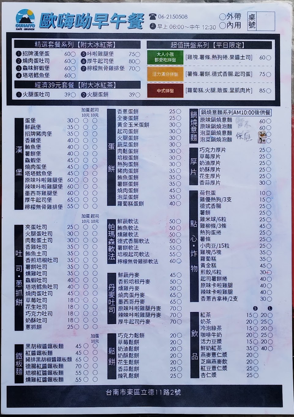 2024最新在地推薦餐廳的菜單_歐嗨呦早午餐/漢堡/三明治/蛋餅/鐵板麵/鍋燒意麵/吐司/帕瑪森軟法的菜單、圖片