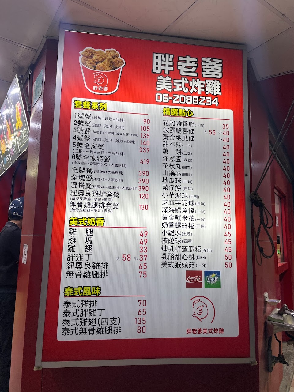 剛去買了1號餐80塊,1塊炸雞塊,1塊雞翅1罐330ml可樂,雞塊雞翅都不大,有點貴