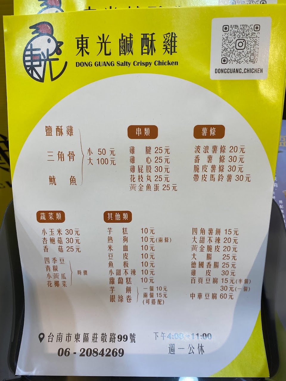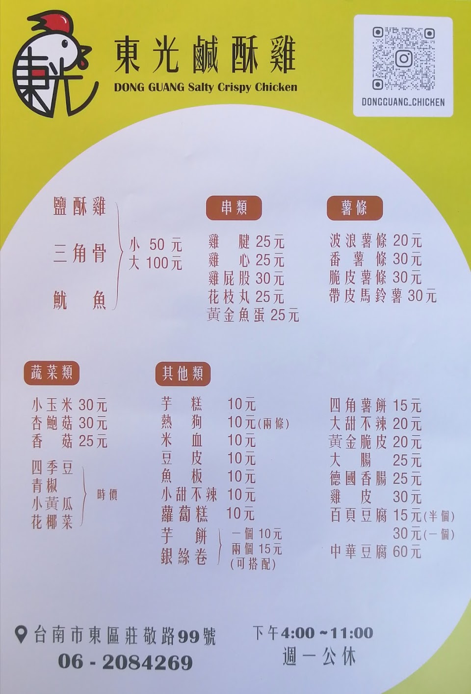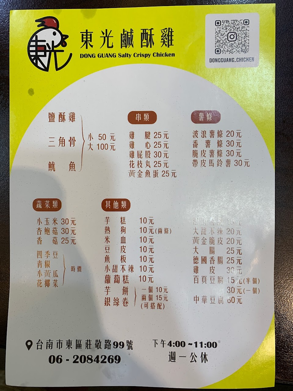 2024最新在地推薦餐廳的菜單_東光鹹酥雞的菜單、圖片