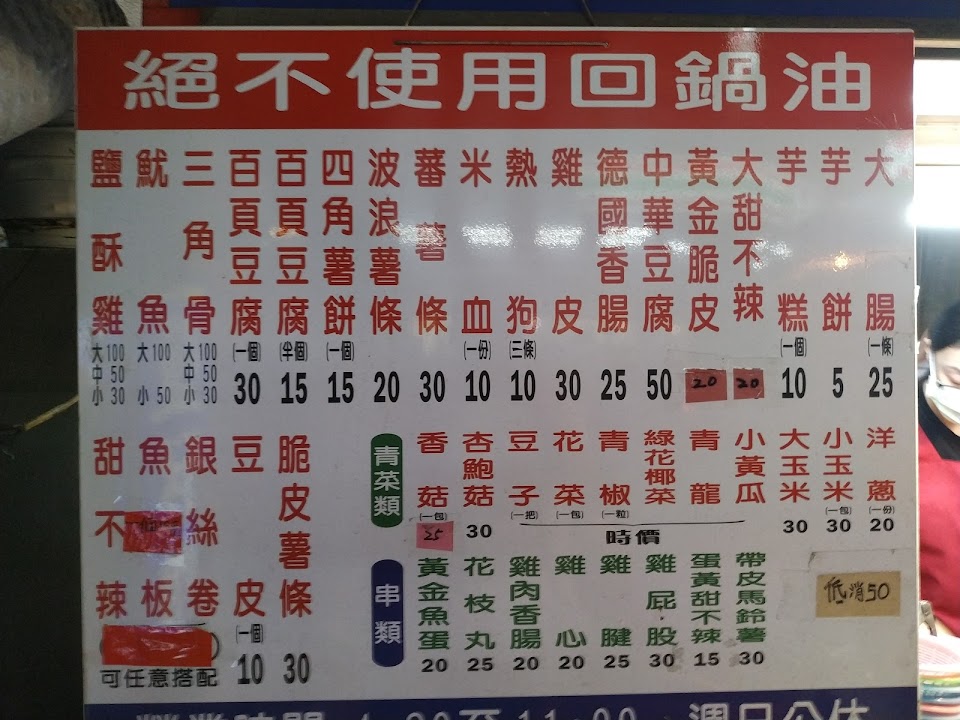 跟老闆說鹹酥雞一份魷魚一份波浪署一份豆皮一份甜不辣一份為啥是240元豆皮裡面還有濕度沒炸開