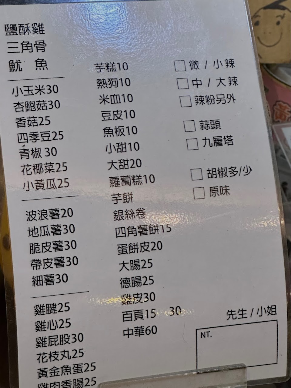 三角骨炸過頭沒肉是不柴汁失望胡椒粉很香蒜頭是切片九層塔要最後放5-10秒拿起來,的大氣,甜不辣薯條魷魚共花了200元不回購