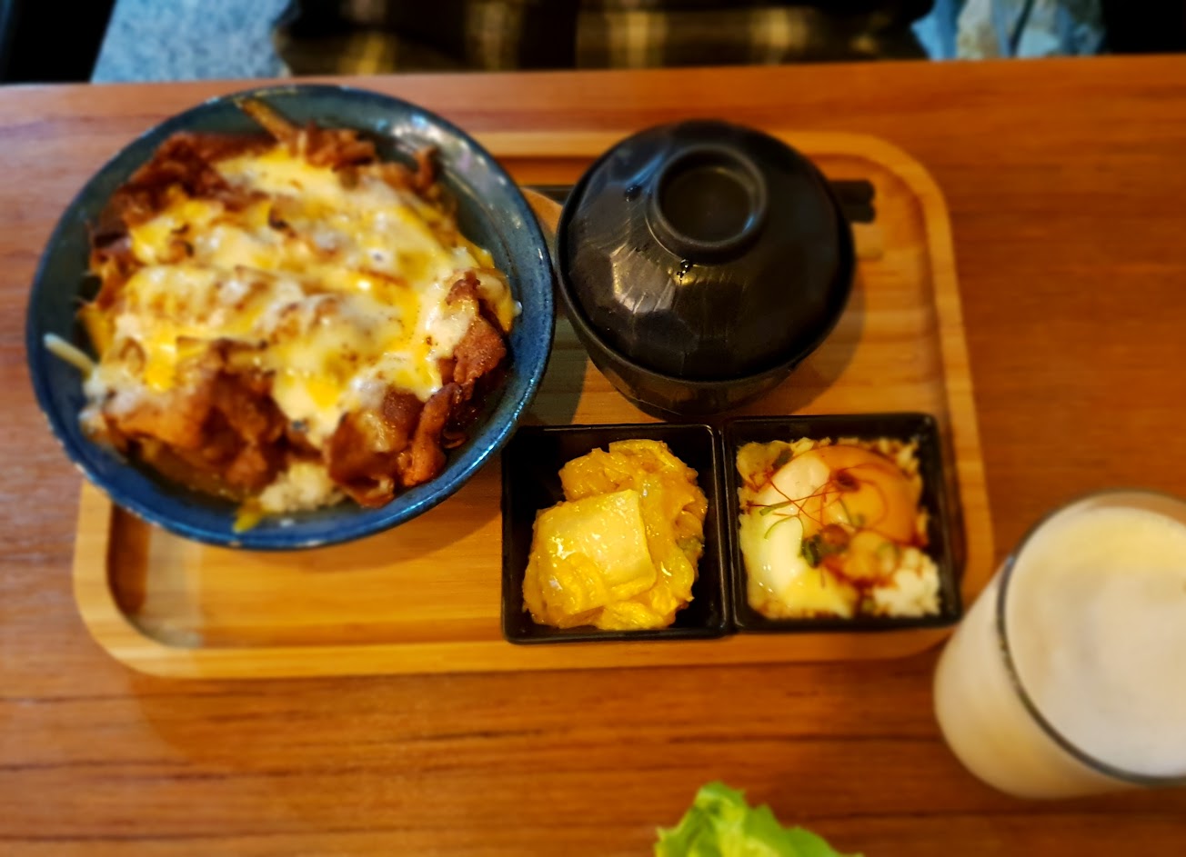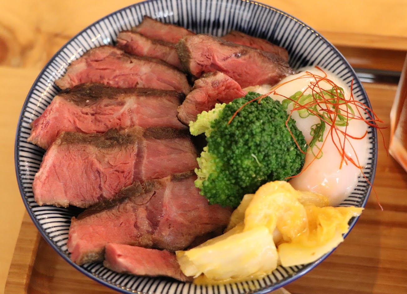這次點了炙燒里肌牛排,脂肪不多,但肉質不柴,小菜都很清爽好吃,湯也夠熱,米飯更是Q彈。丼飯類的可以免費加飯一次,適合食量較大的食客。