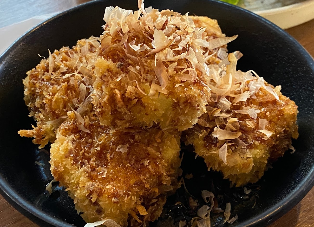 唐揚雞熱熱的還不錯吃,咬下後有肉汁流出,這點有加分,另外日式炸豆腐也不錯,醬汁完全與麵衣結合,更加提升了口感!只可惜單點都比較貴一點!