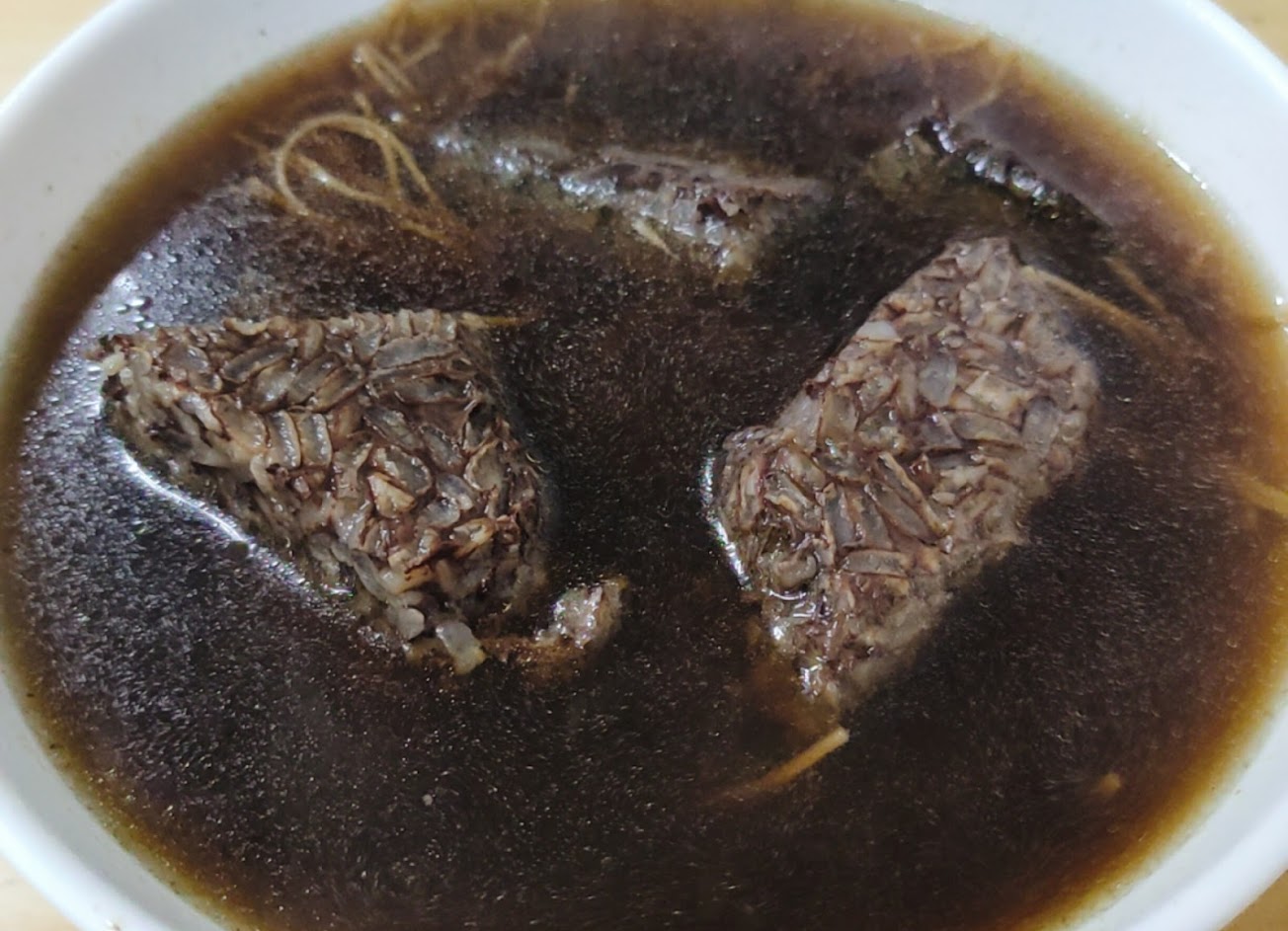 2016/11/09,有單獨賣當歸清湯10元,米血是傳統那種,雞絲飯跟燙清菜味道也不錯,平價午晚餐店。