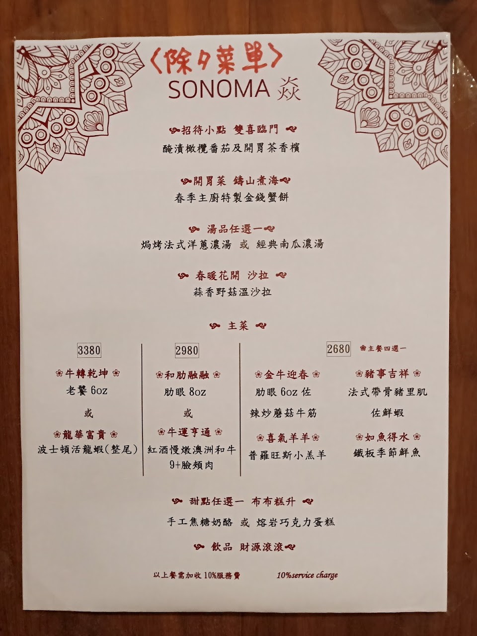 2024最新在地推薦餐廳的菜單_Sonoma 焱 牛排館的菜單、圖片