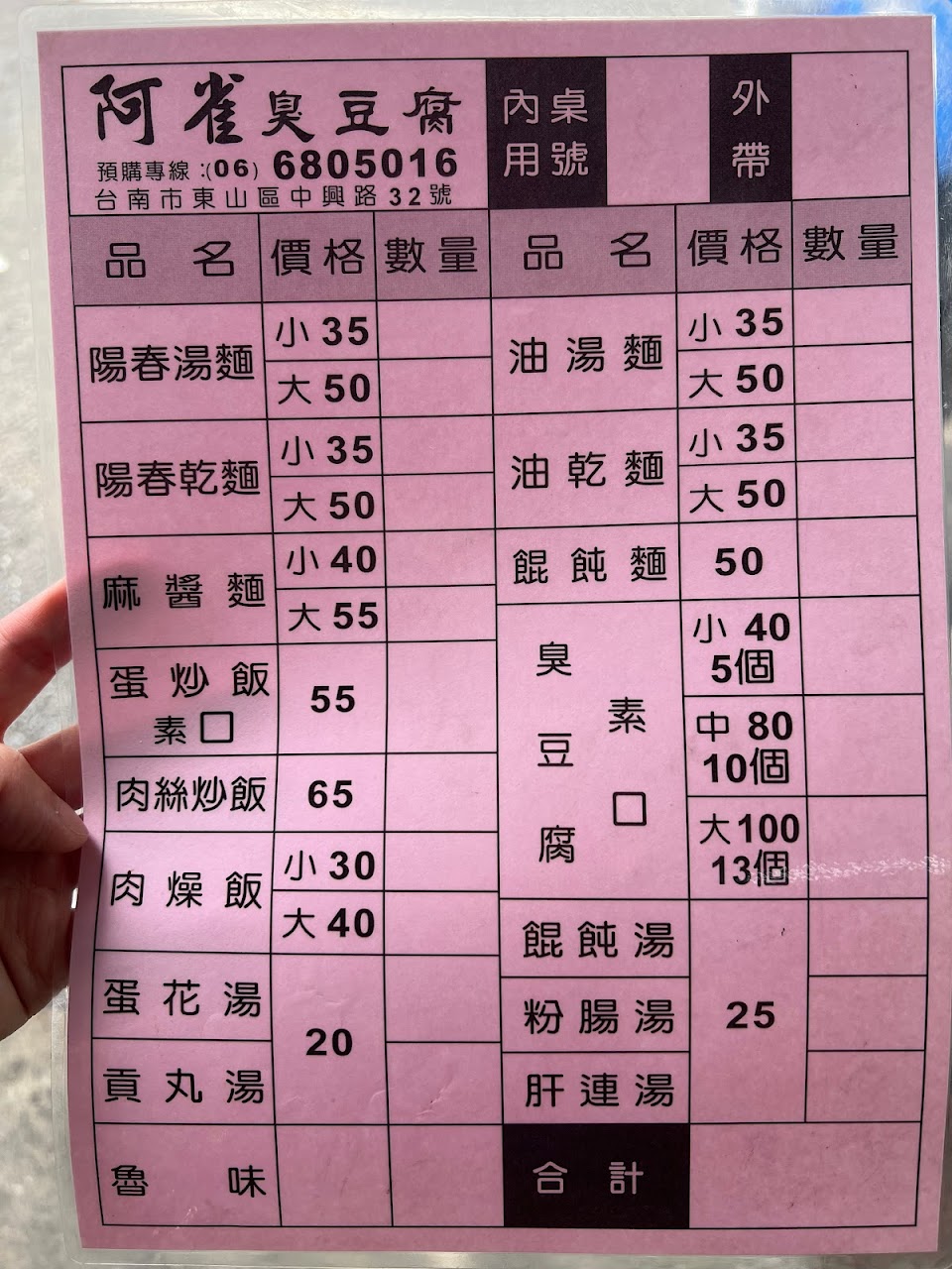 2024最新在地推薦餐廳的菜單_阿雀姨陽春麵臭豆腐的菜單、圖片