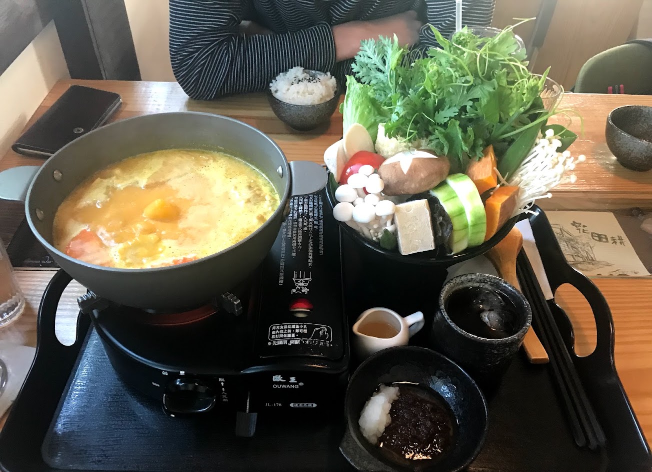 咖啡好喝 蔬菜火鍋湯頭清淡好喝,高梁酒醋加在沙茶醬很提味