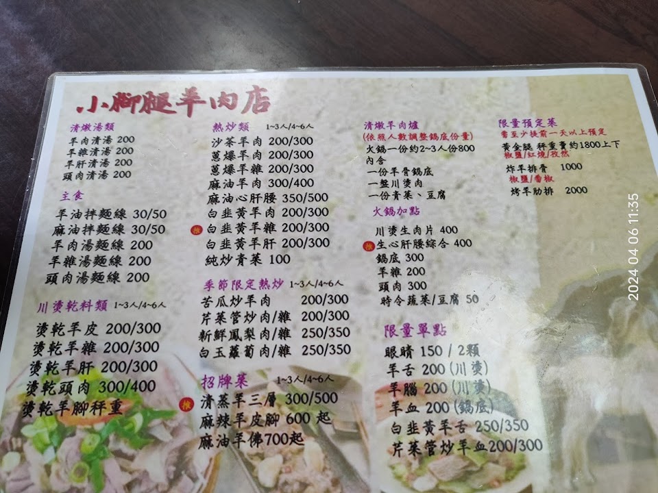 2024最新在地推薦餐廳的菜單_小腳腿羊肉店的菜單、圖片