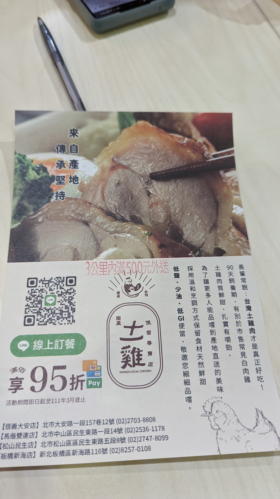 線上訂餐95折,會線上通知收單、出貨、送達,但送達不代表真的送到,店家解釋可能打發票就算出貨了。實際經驗是以接電話為準。