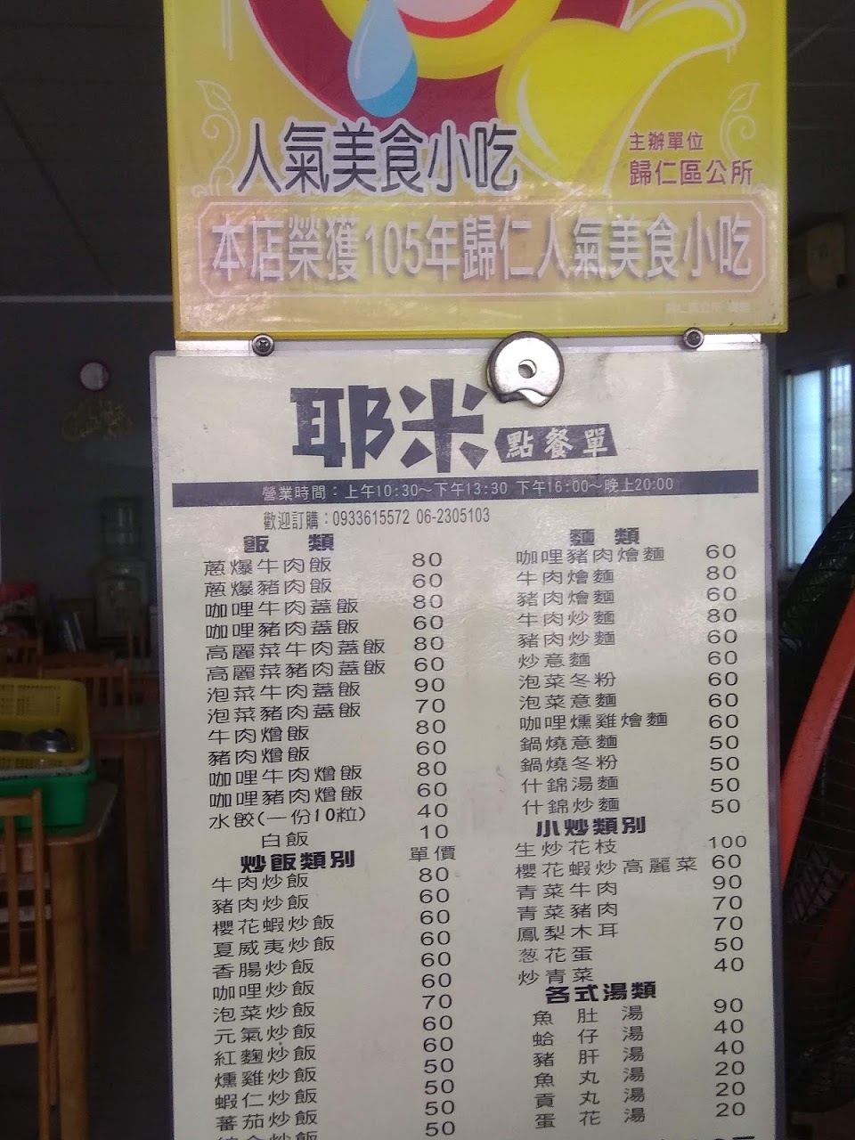 2024最新在地推薦餐廳的菜單_耶米現炒美食的菜單、圖片