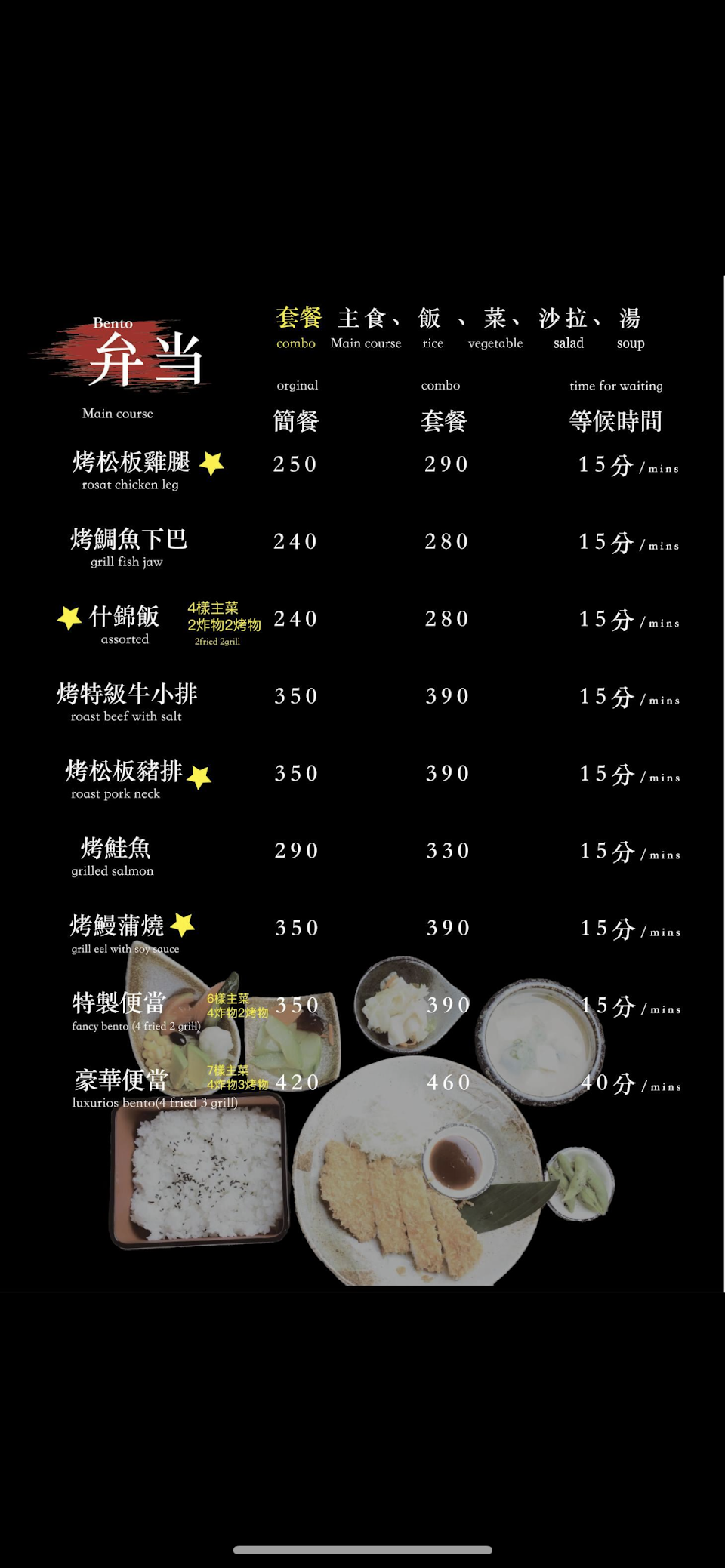 定食裡的味增湯 等到真的要結帳前走了才上⋯ 服務 內用 餐點類型 晚餐 平均每人消費金額 $200-400