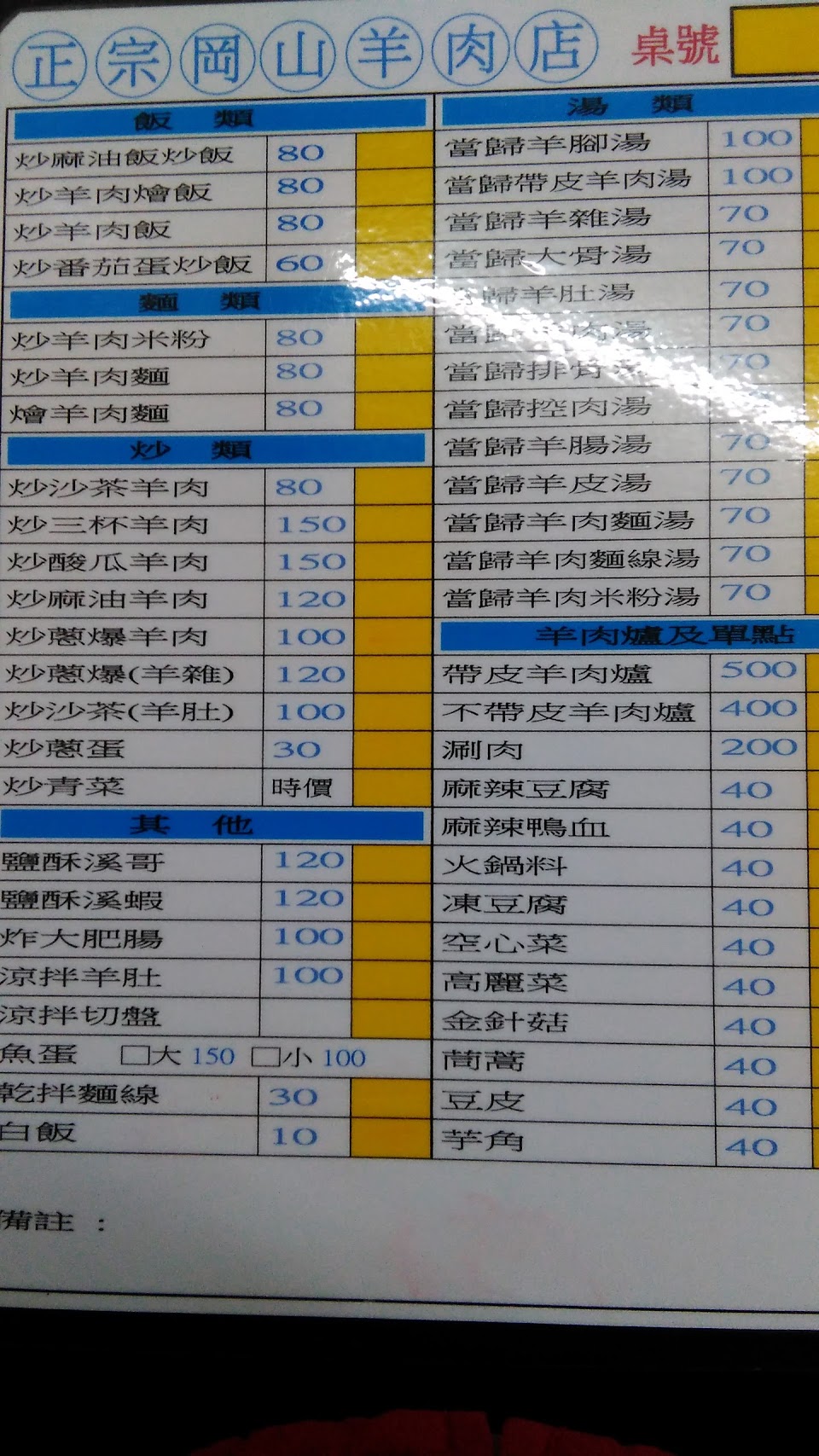 2024最新在地推薦餐廳的菜單_正宗岡山羊肉店的菜單、圖片