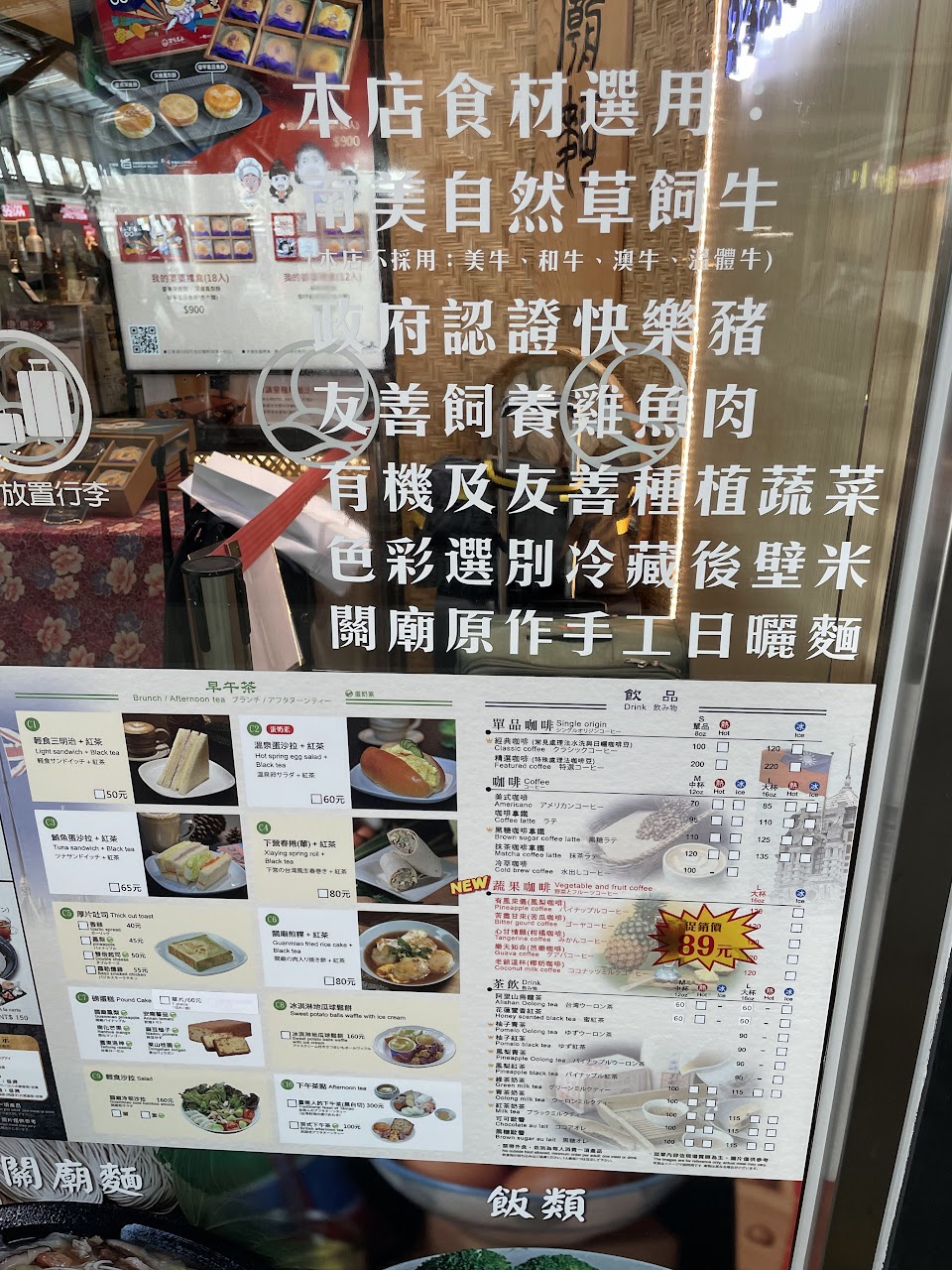 有各種輕食、麵包、飲品咖啡,也有正餐飯和麵(台南特色)