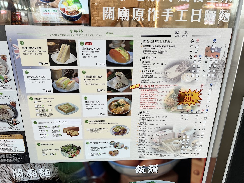 有各種輕食、麵包、飲品咖啡,也有正餐飯和麵(台南特色)