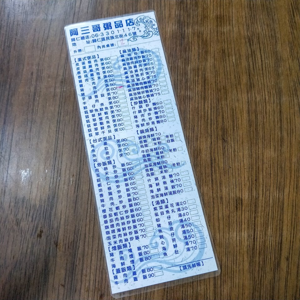 2024最新在地推薦餐廳的菜單_阿三哥粥品(歸仁店)的菜單、圖片